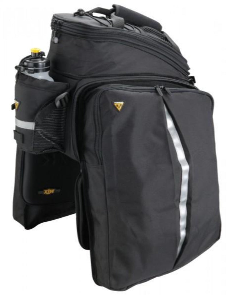 Large weather resistant trunk bag based on the popular MTX DXP, but with Velcro mounting straps. Complete with fold-out panniers, expanding top, and water bottle holder.