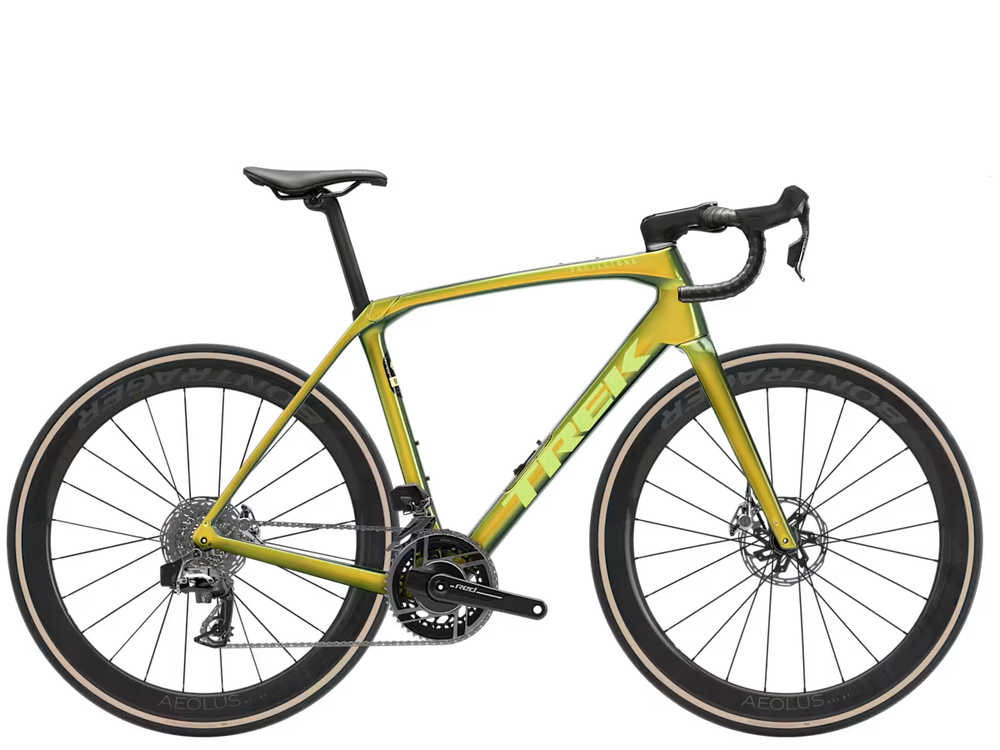 The Domane SLR 9 AXS is our top-of-the-line, ultra-light carbon endurance road bike decked out with the best parts for a fast, high-performance ride. You get an 800 Series OCLV Carbon frame with rear IsoSpeed, a 2x12 SRAM RED AXS E1 electronic drivetrain and OCLV Carbon wheels and handlebars.