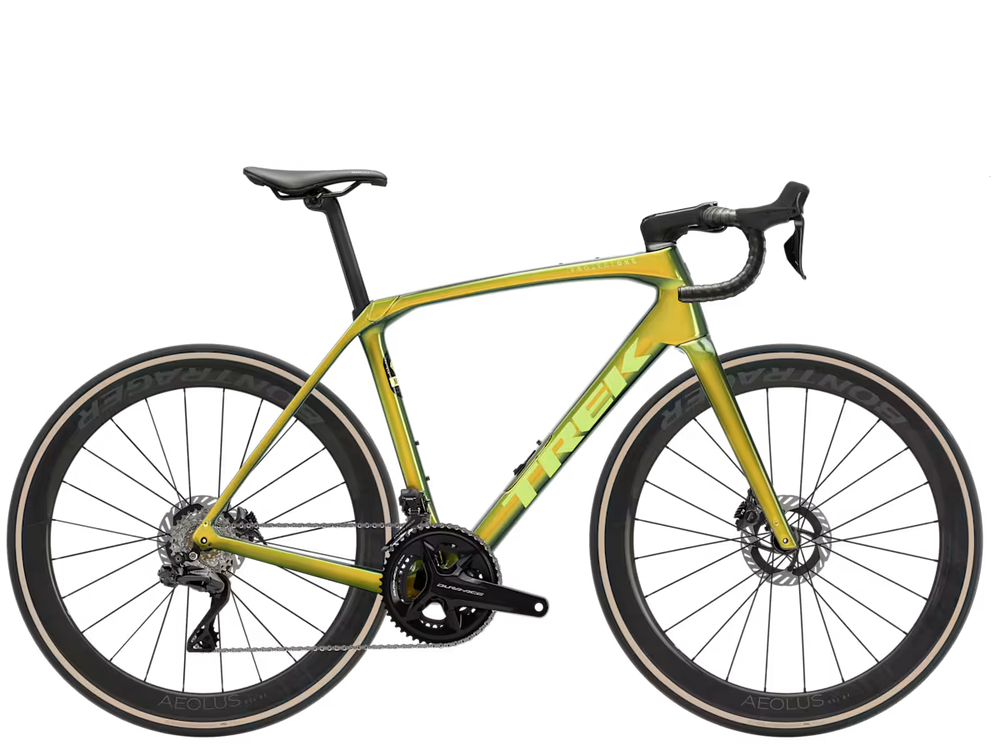 The Domane SLR 9 is our top ultra-light carbon endurance road bike decked out with cream-of-the-crop parts made for a fast, high-performance ride. You get an 800 Series OCLV Carbon frame with rear IsoSpeed, a 2x12 wireless Shimano Dura-Ace Di2 electronic drivetrain for precision shifting and OCLV Carbon wheels and handlebars.
