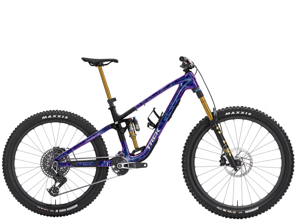 The Fuel MX 9.9 X0 AXS is our top-tier chaos-craving carbon trail bike, built for chasing the wilder things in life. It starts off with an OCLV Mountain Carbon frame, speced with a Fox Factory suspension package (150 mm rear, 160 mm front) and MX wheels for getting wild on the trail. SRAM's wireless X0 AXS transmission delivers crystal-clear shifting, even under load, while 4-piston SRAM Maven Silver brakes give you the modulation and power you need. It's topped off with a Fox Transfer NEO dropper post and carbon Bontrager Line Pro 30 wheels.
