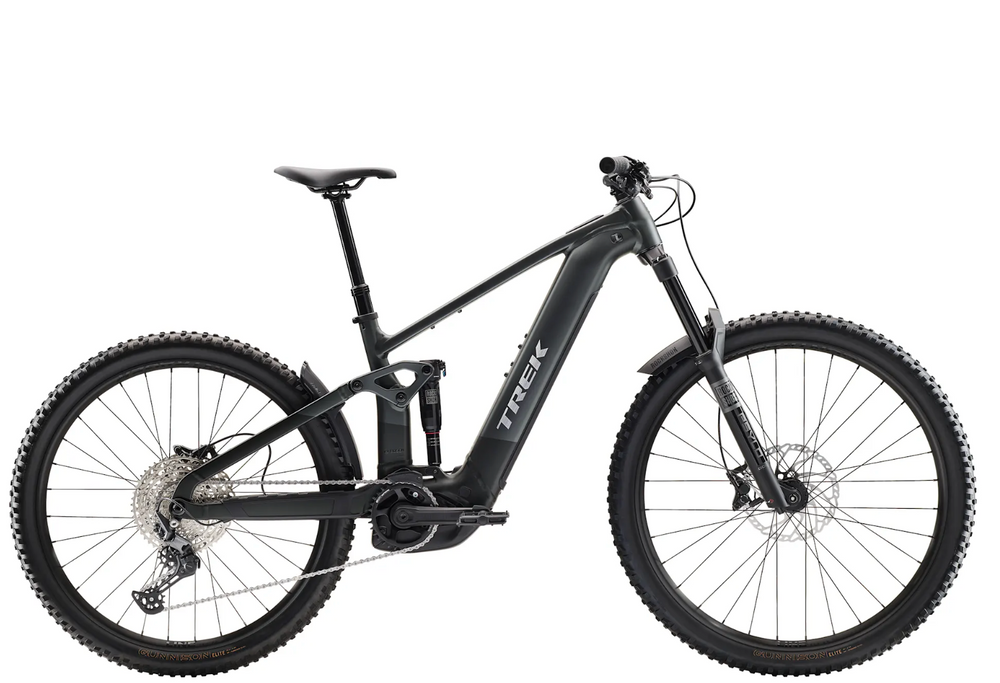 The Rail+ 5 is an alloy enduro e-bike that delivers huge value for big adventures. Its rugged Alpha Platinum Aluminium frame partners with a RockShox Deluxe Select+ RT shock and Psylo Gold RC fork (160 mm rear/front) to charge through the roughest terrain on the mountain. A Shimano Deore 12-speed drivetrain and 4-piston MT4100 brakes deliver clean shifting and brake modulation that doesn't break the bank. It's topped with a TranzX dropper post and tubeless-ready Bontrager Line TLR 30 wheels for charging into anything.