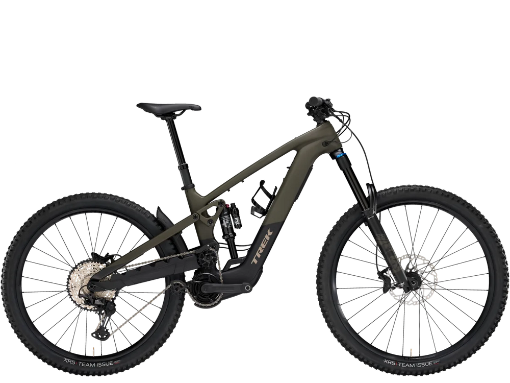 An OCLV Mountain Carbon frame with high pivot suspension and a quiet but mighty TQ HPR50 (50 Nm, 250 W) motor with a 580 Wh battery. 170 mm of front and rear travel from a Fox Rhythm 38 fork with Float EVOL air spring and GRIP damper and a Fox Performance Float X shock. Stiff Bontrager Line Comp 30 Tubeless Ready wheels (29" front, 27.5" rear) for handling the rough, a Bontrager Line dropper post and a Shimano SLX/XT drivetrain.