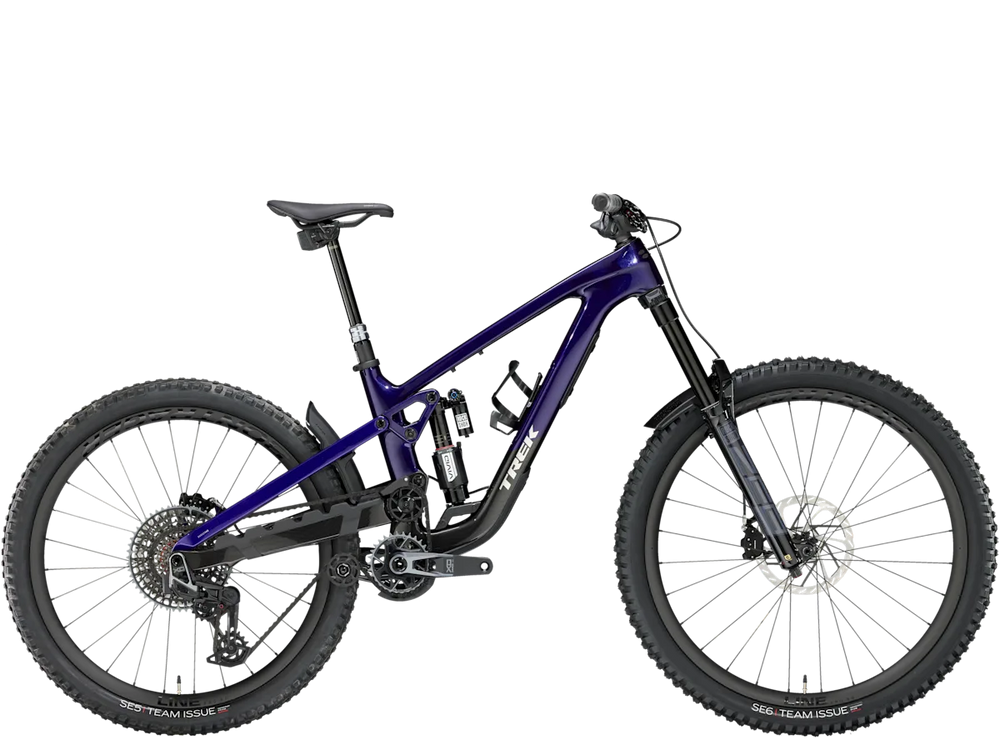 An OCLV Mountain Carbon frame with high pivot suspension, plus internal storage. 170 mm front and rear travel with a RockShox ZEB Ultimate fork with DebonAir spring and Charger 3.1 RC2 damper and RockShox Vivid Ultimate shock. SRAM’s X0 Eagle AXS transmission gives you wireless shifts that stay crisp under load and a Bontrager Line Dropper gives you room to move around on the bike. 29˝ front and 27.5˝ rear carbon Bontrager Line Pro 30 Tubeless-Ready carbon wheels with Rapid Drive hubs give you versatility wherever you charge.