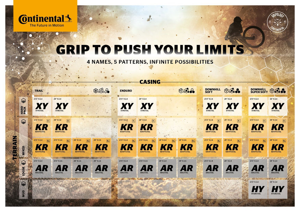The specialist for harder terrain, the XYNOTAL is available in 8 formats to suit Downhill, Enduro and Trail riders. Angled in-line shoulder studs for predictable and indulgent transitions. The benefit : a high limit range can be reached predictably and safely. Pronounced positive profile with a large number of contact areas.. Benefit : harmonious riding behaviour and high grip on hard and slightly loose surfaces. Pronounced ramps in the direction of rotation ensure harmonious and easy rolling.